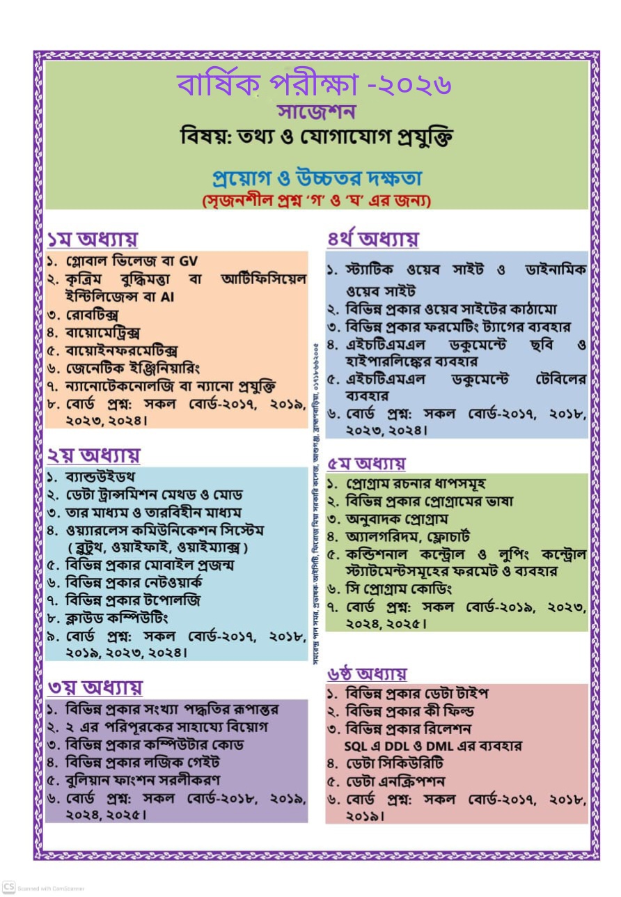 বার্ষিক পরীক্ষা-২০২৬, সাজেশন, বিষয়: তথ্য ও যোগাযোগ প্রযুক্তি