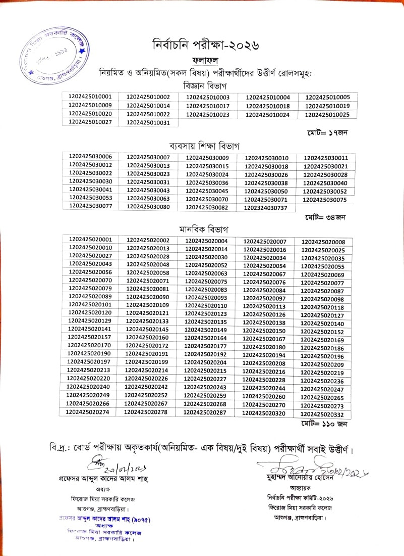 নির্বাচনি পরীক্ষা-২০২৬ এর ফলাফল।